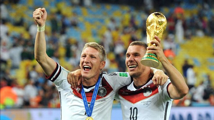 | Bastian Schweinsteiger and Lukas Podolski were part of Germany's 2014 World Cup triumph. |